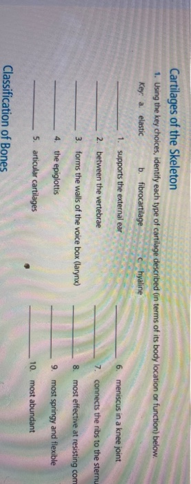 Rs8 Cartilages Of The Skeleton 1 Using The Key Choices Identify Each Type Of Cartilage Described In Terms Of Its Body Location Or Function Below Course Hero